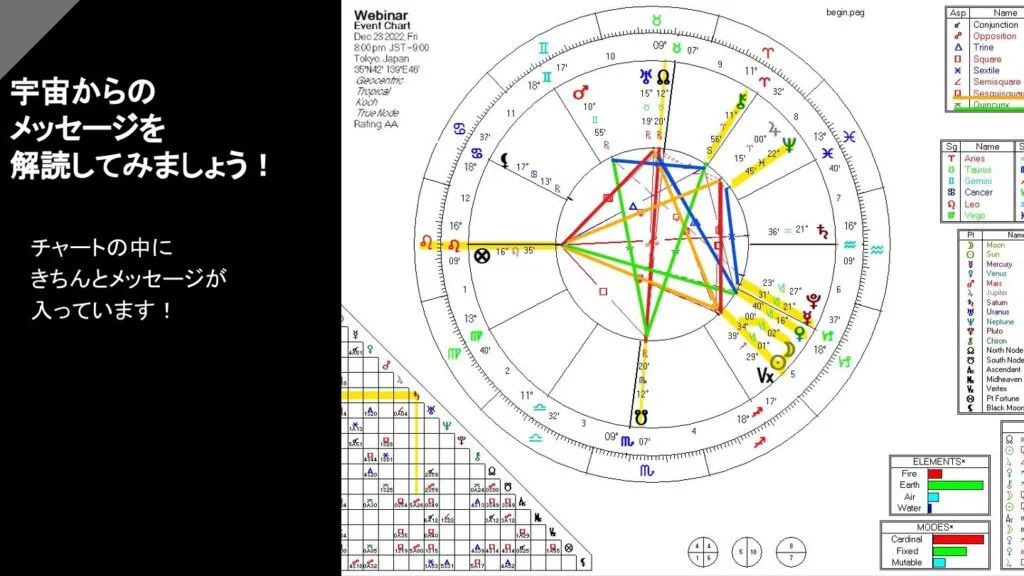 アストロロジーというのは、そのチャートに秘められた宇宙からのメッセージを解読する手法なのです。