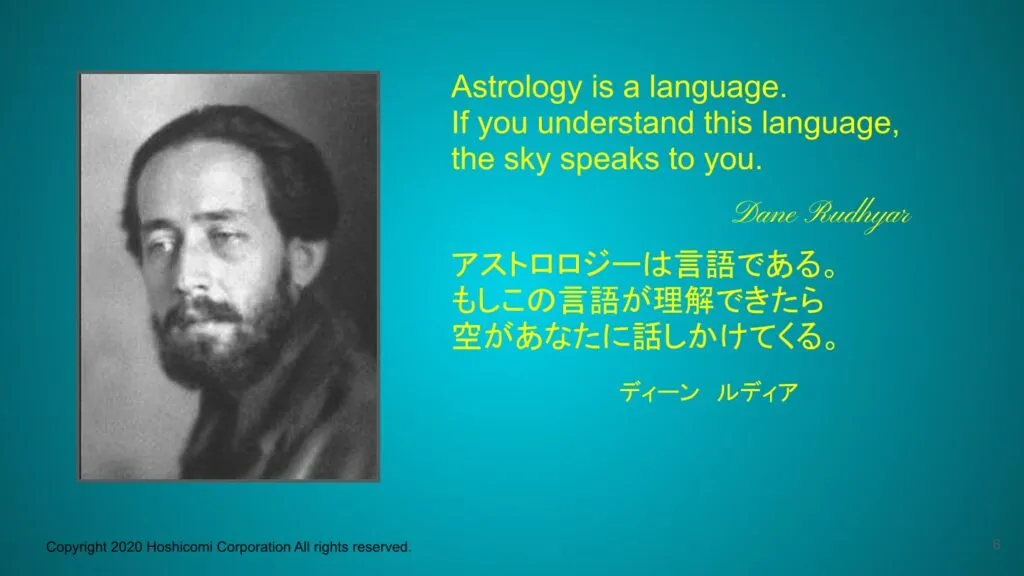 「アストロロジーは言語である。もしこの言語が理解できたら、空があなたに話しかけてくる。」
