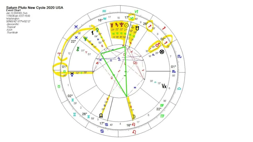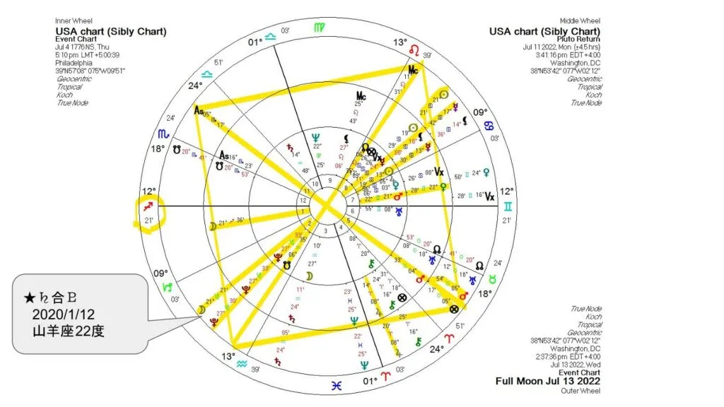 土星と冥王星が2020年1月13日(アメリカは12日)に重なったところはやぎ座22度です。