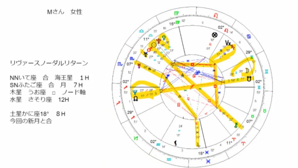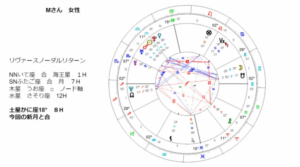 なぜ私が今回Mさんを選んだかというと、ノードリターンだなということも1つありますが、今回のかに座の新月が土星とぴったり重なっていたからです。