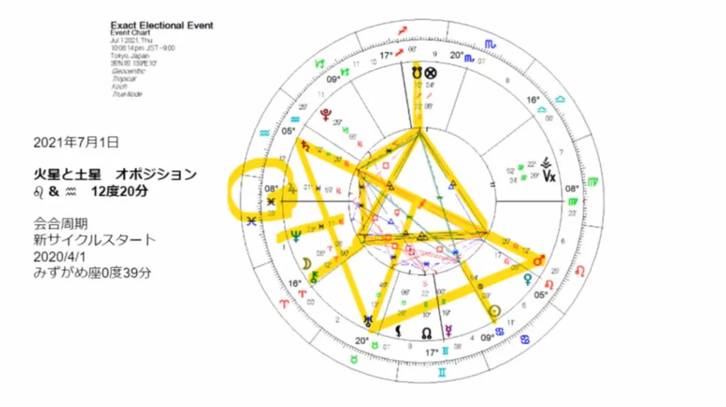 さっきお話するのを忘れてしまったので、火星と土星のオポジションのチャートに戻します。