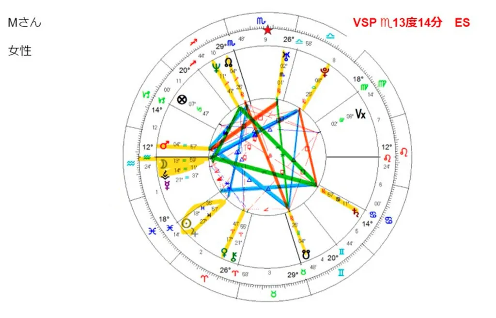 今日は久しぶりに会員さんのチャートを読んでみたいと思います。Mさんは、みずがめ座12度がアセンダントです。