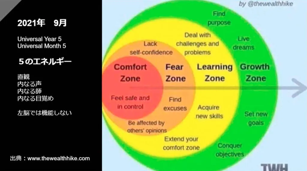この成長のエネルギーは必ずこの快適ゾーンから恐れがあって、そこから勇気を持って学んでみることでいろいろ気付けると、成長できるのです。