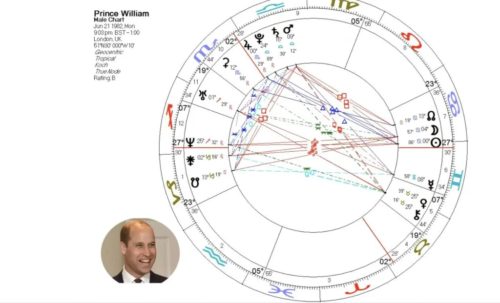 そしてもちろん、ノードが近いので、ウィリアム王子も、今度は日蝕の時に生まれています。お二人のチャートをよく見比べると、お二人は同じサインで、キャサリン妃は月蝕、ウィリアム王子は日蝕で生まれているのです。
