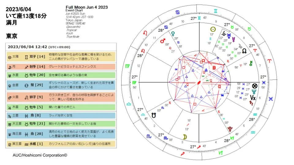 6/4のいて座満月は、ネイタルとトランジットのしし座・火星がパータイルで合になります。