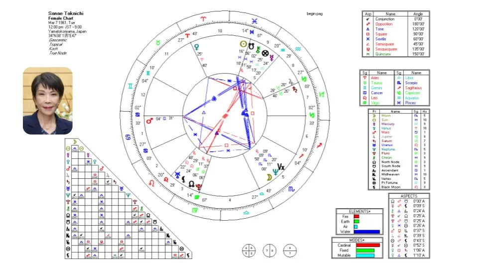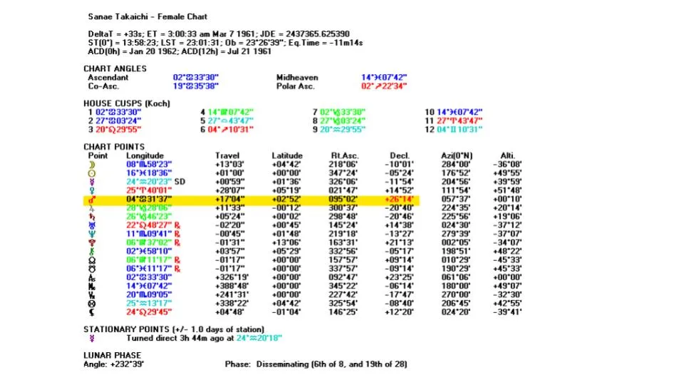 まずは、高市さんのネイタルチャート(ホロスコープ)を見ていきましょう。