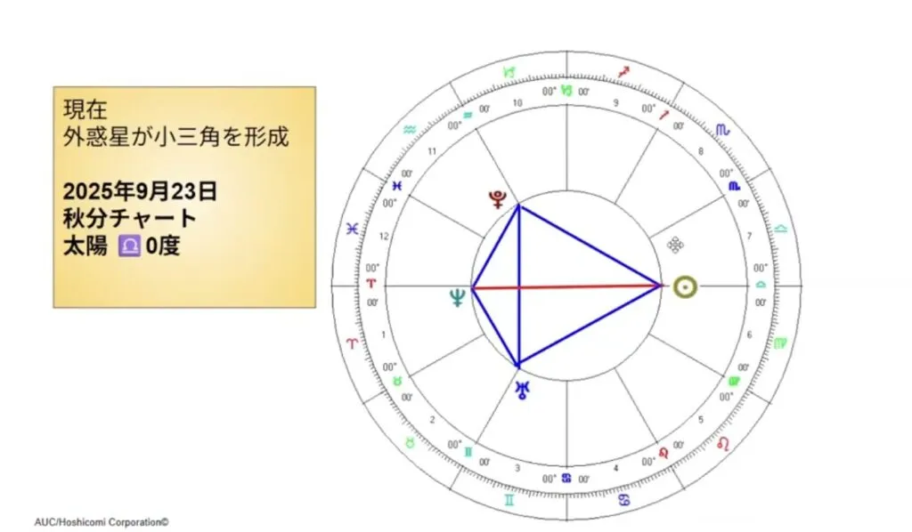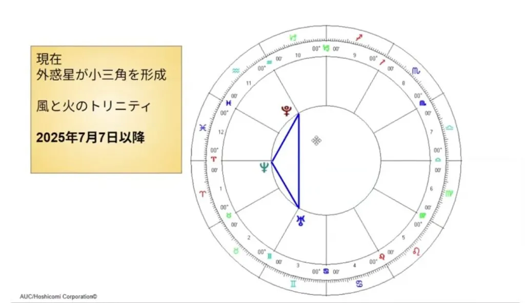 この3つが作るのが、美しい小三角形。チャンスや変革をもたらす特別な配置です。