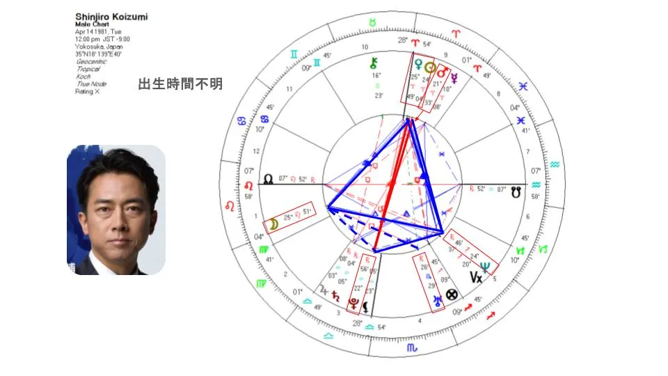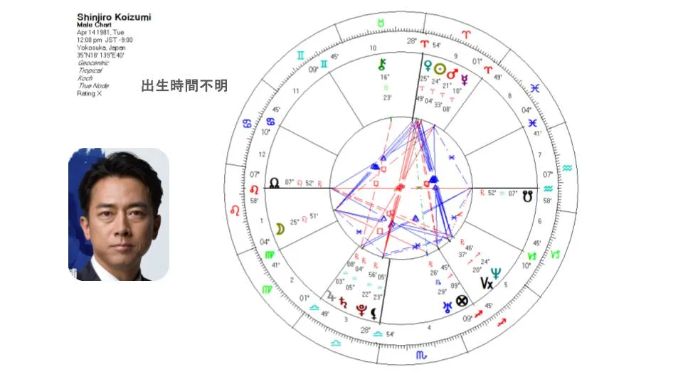 ただ、出生時間が分からないため、今回は正午(12時)でチャートを出しています。