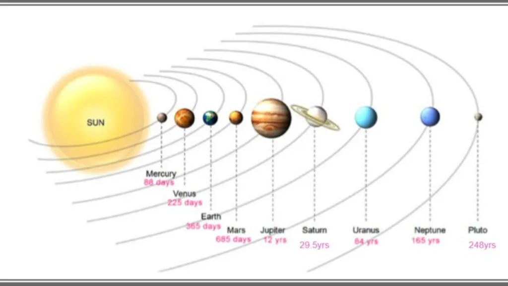 木星と土星は「社会天体」と呼ばれ、木星は約12年、土星は約30年弱で太陽の周りを回ります。火星は約2年、水星や金星はそれよりも速い周期で動きます。