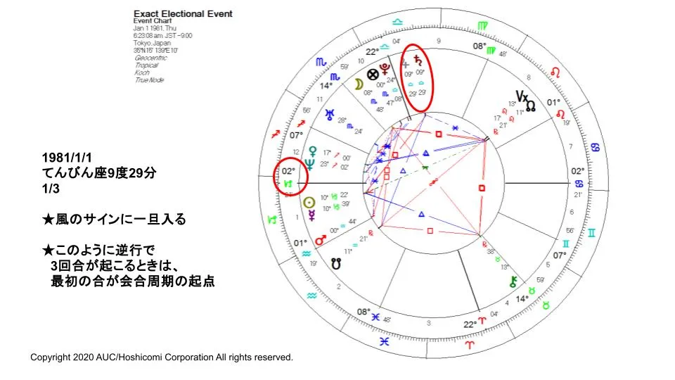 AUCで教えているこの手法は完全オリジナルで、惑星の会合周期やアスペクトを、単なる角度としてではなく、サイクルとして読むのが特徴です。