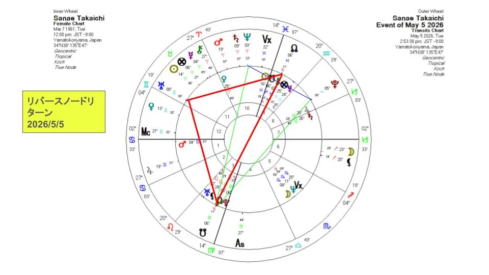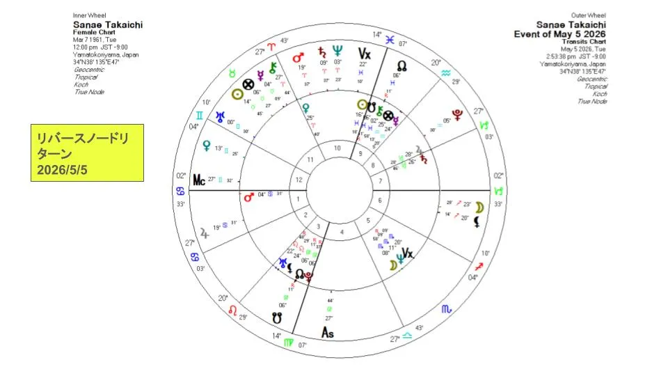 2026年4月26日、天王星は本格的にふたご座に入っていきます。高市さんのリバースノードリターンはその直後に起こっています。