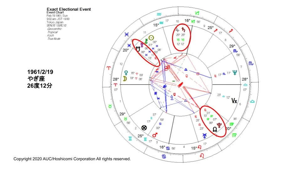 高市さんの生まれた1961年、この年の2月19日に木星と土星がやぎ座26度12分で合になっています。