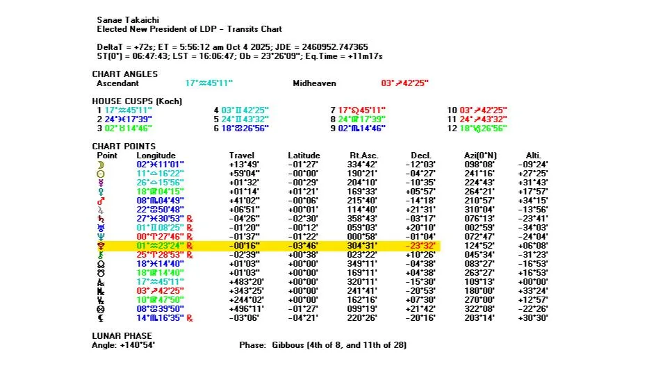 意識進化占星学の視点から見ると、総裁選当日の星の配置は、風の時代が選んだ新しいリーダーの誕生を象徴していたのです。