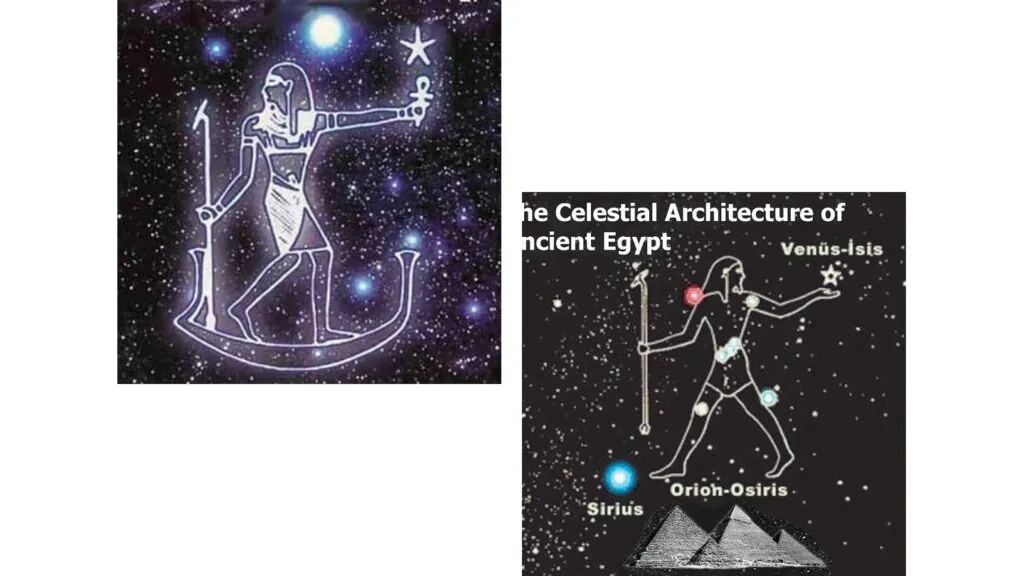 右の星座が旦那さんのオリオン=オシリスで、左の星座がオシリスの奥さんのイシス=シリウスです。どちらも必ず五芒星が出てきます。