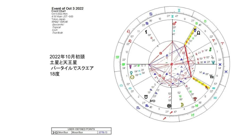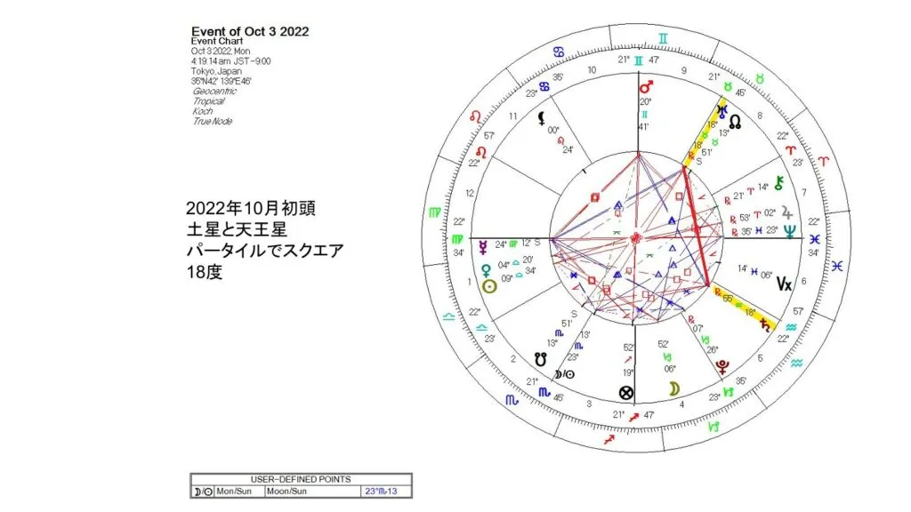 さて、新しいVSPが出てくる前の10月初めには、土星と天王星がまた18度のパータイルでスクエアを形成します。