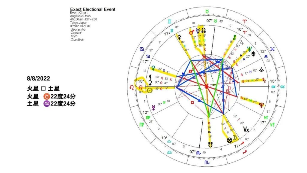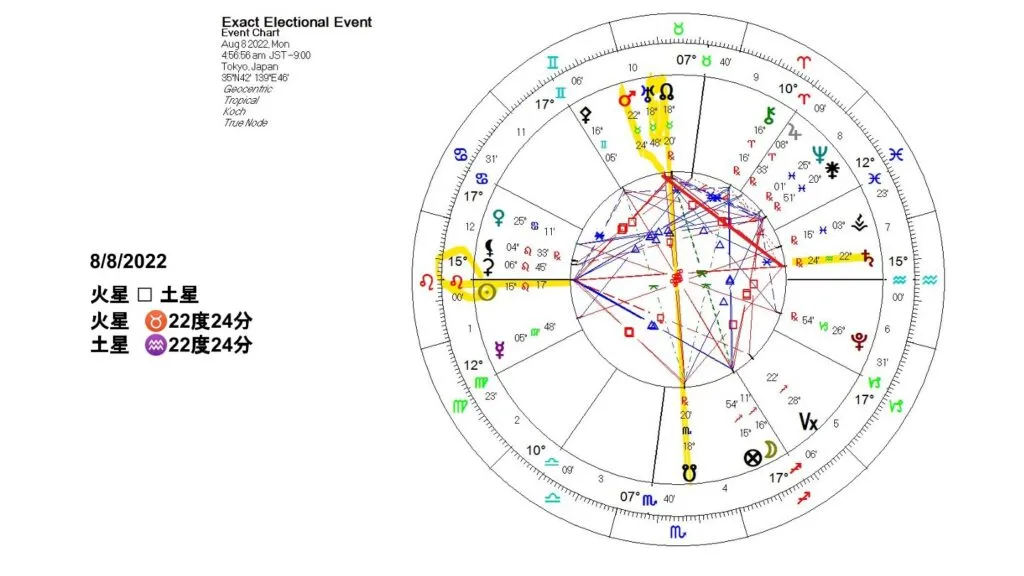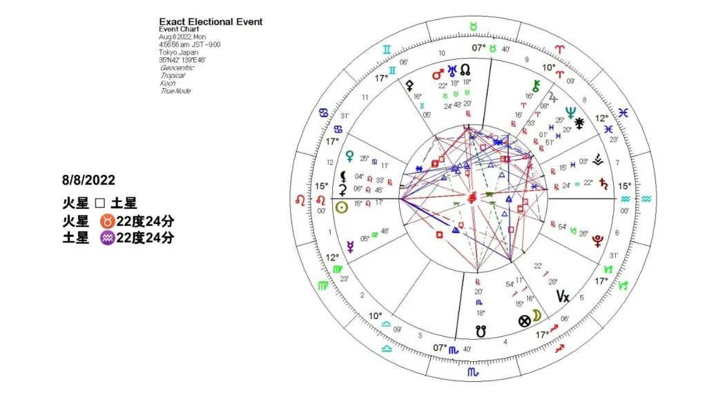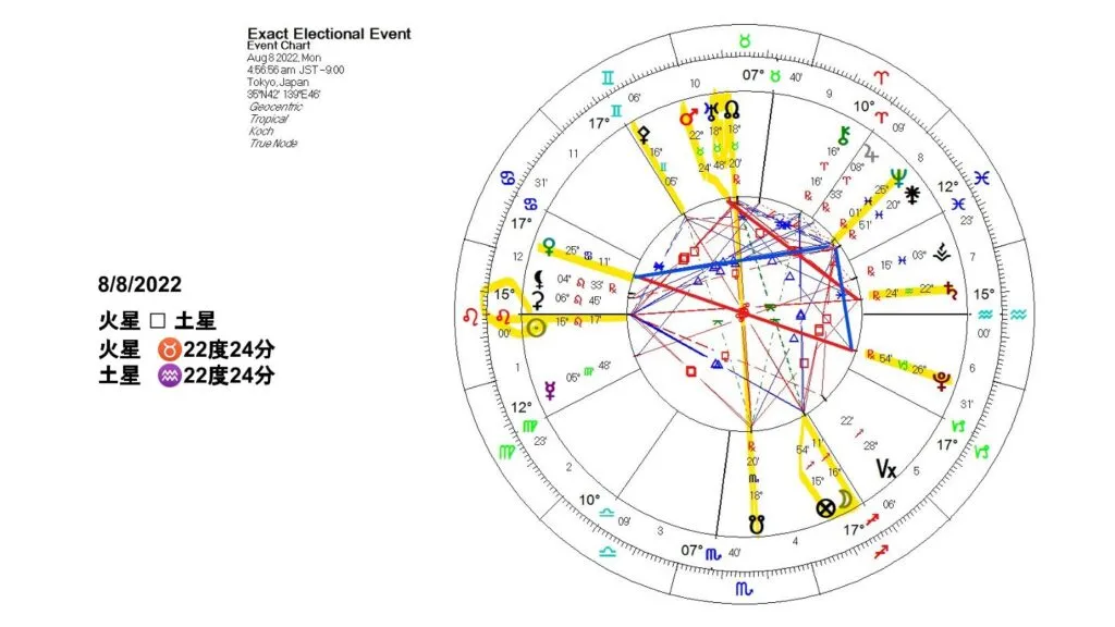 8月8日の火星と土星のスクエアの時に、日本の皆さんはアセンダントがしし座の15度でした。