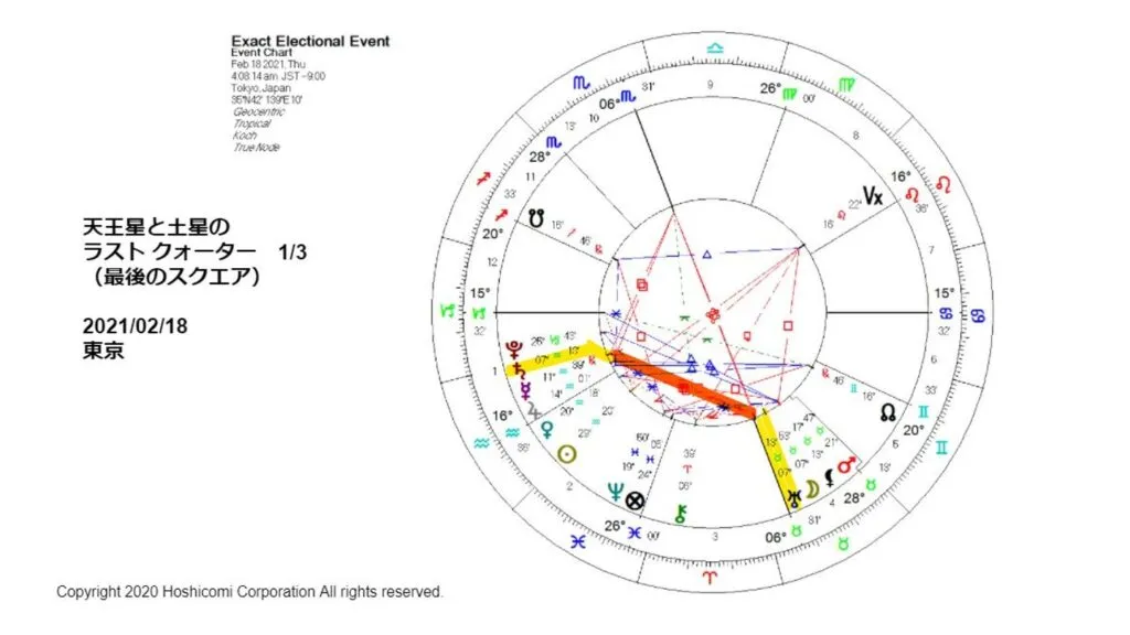 後でお話しますが、去年、土星と天王星がラストクオーターと言って、ぴったり3回スクエアになりました。