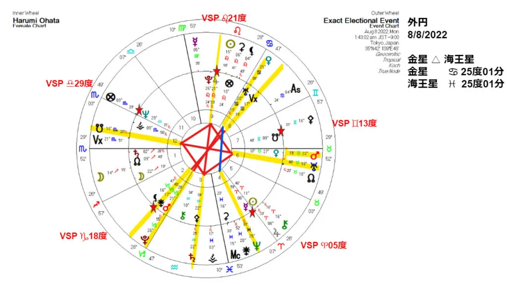 8月1日のチャートを見てみると、例えばこの時のVSPの反対側には金星がいました。