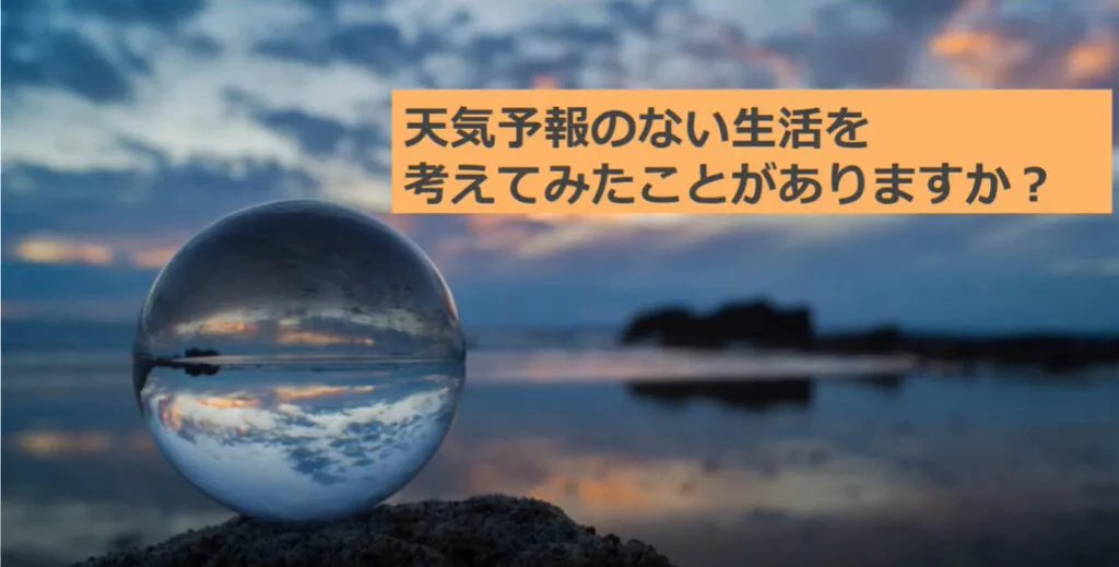 明日雨が降るから傘を持って行こうとか、来週は台風が来るから、今のうちに水や防災グッズを買って準備しておこうとか、天気予報があるから毎日の日常生活のナビゲーションがうまくいくことは多いと思います。
