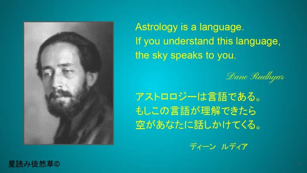 「アストロジーは言語である。もしこの言語が理解できたら、空があなたに話しかけてくる。」