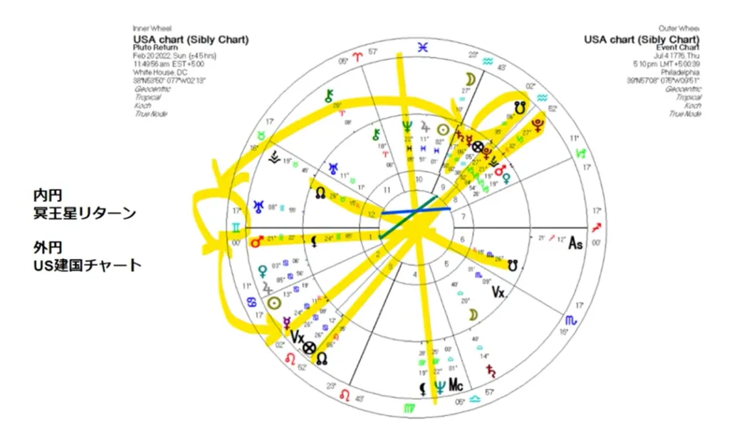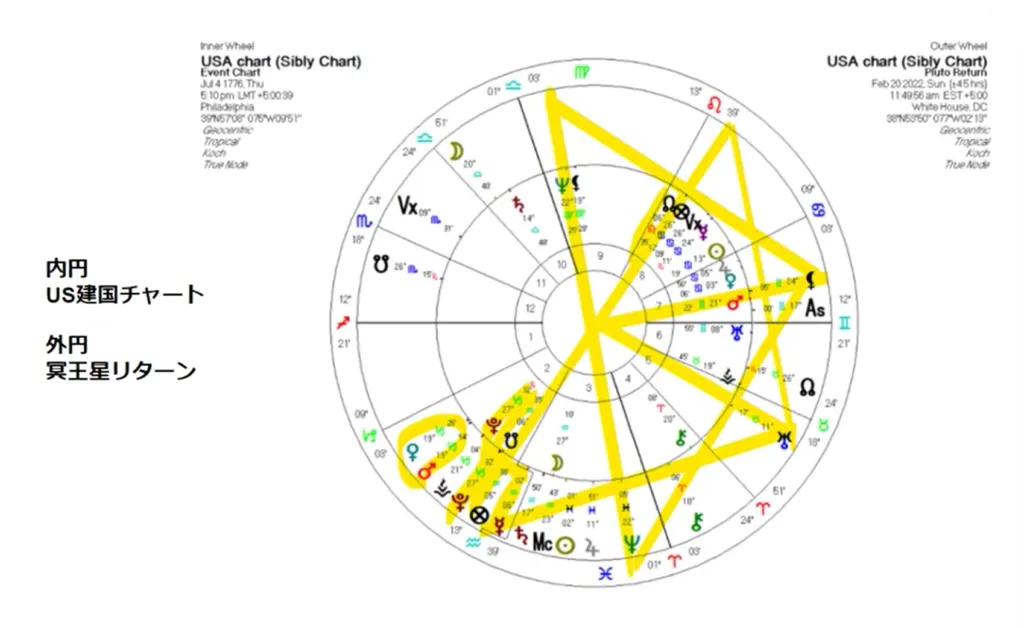 アメリカの建国チャートと冥王星リターンの二重円を読む