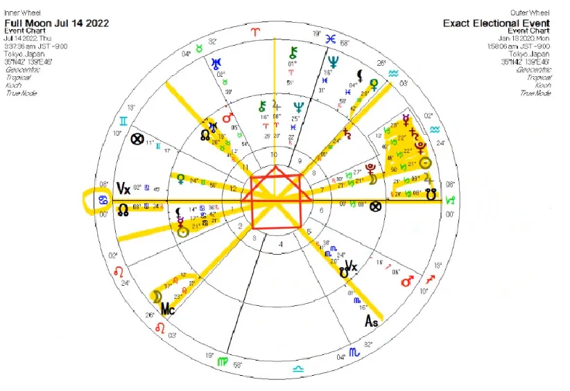 まだまだたくさんあって、合の時の海王星と満月の水星はきれいなトラインを取っているし、土星と金星もきれいなトライン取っていますから、やはり何かあると思うのです。