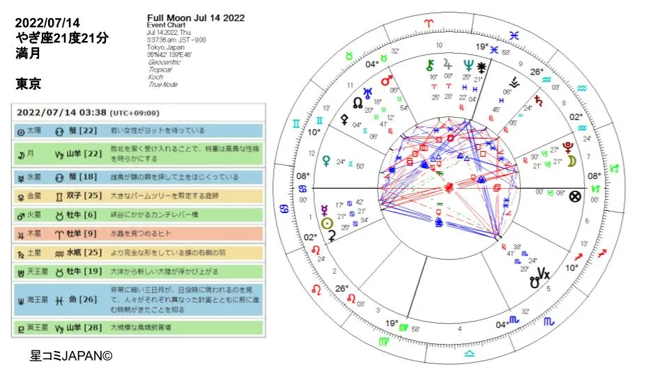 エネルギーナビエーター、大旗ハルミがお送りする星読み徒然草202。今日は2022年7月13日か14日、やぎ座21度21分満月のメッセージをお届けします。