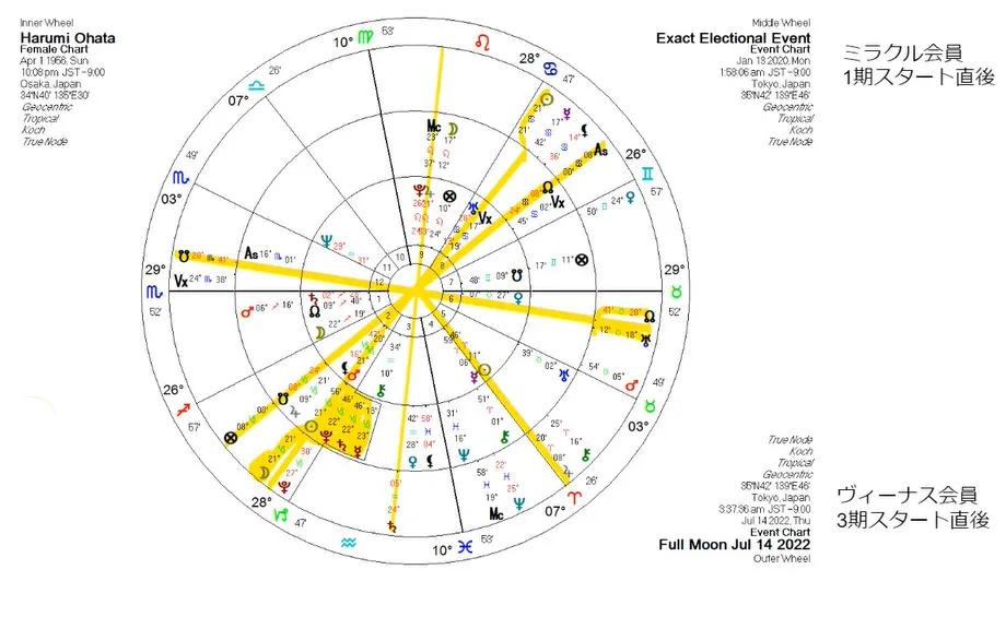 - 「風の時代の理想的なコミュニティ」という響きにひかれ、ヴィーナス会員に憧れを持ちました。3期スタートのチャート説明で、「8ハウスに天王星、ノースノード、火星がいる。仲間、特に一対一の関係性の中で成長できる」とハルミ先生がお話して下さいました。
