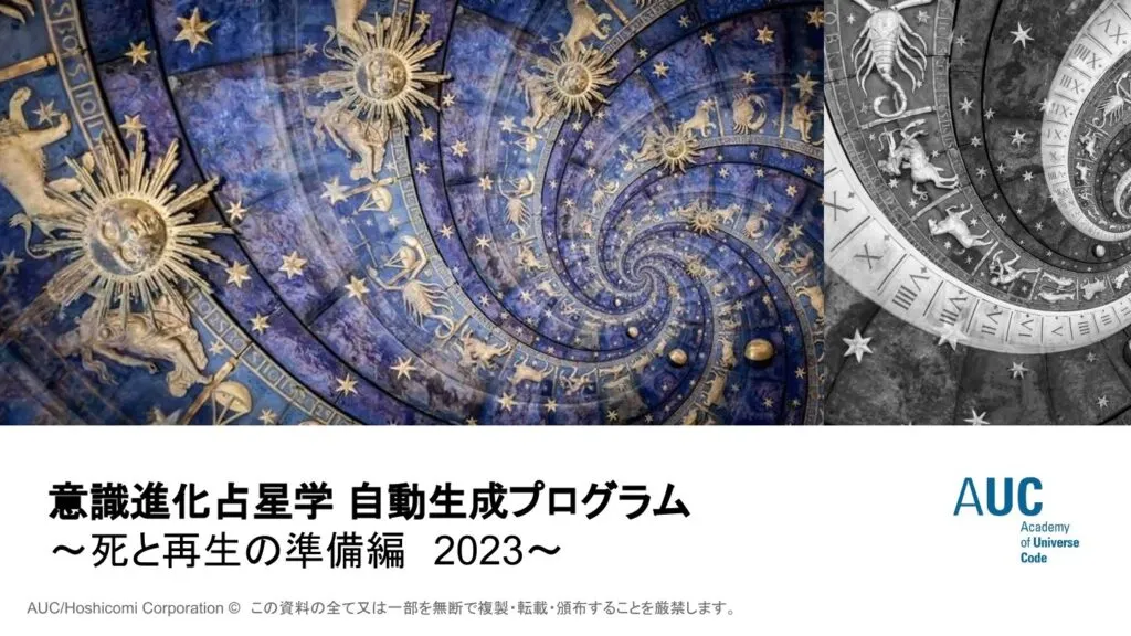 この新月の直後からAUC 意識進化占星学 自動生成プログラム第2弾、~死と再生の準備編2023~の詳しい解説をするWebinarを公開しました。
