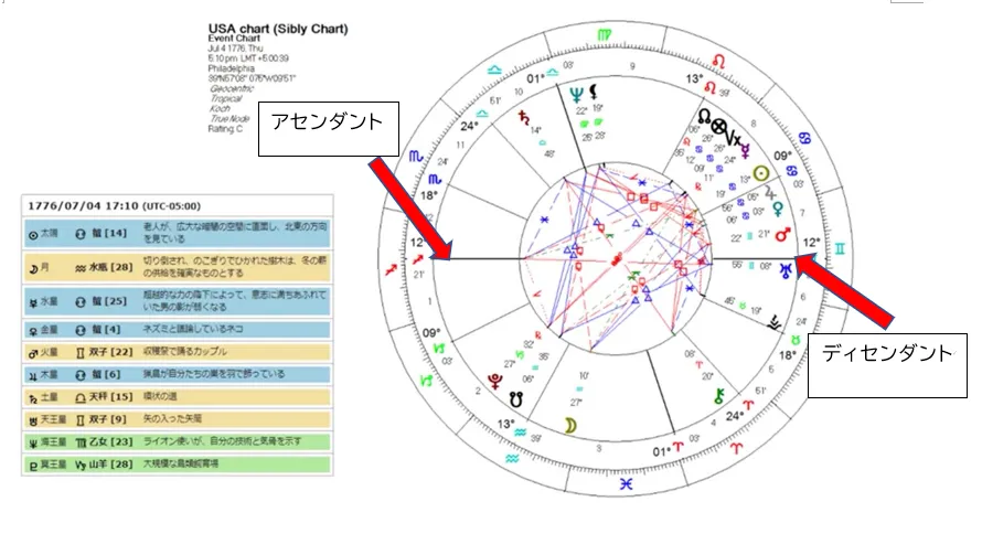 これが、アメリカが建国された時1776年7月4日、5時10分のフィラデルフィアで取ったチャートで、これをシブリーチャートと言います。
