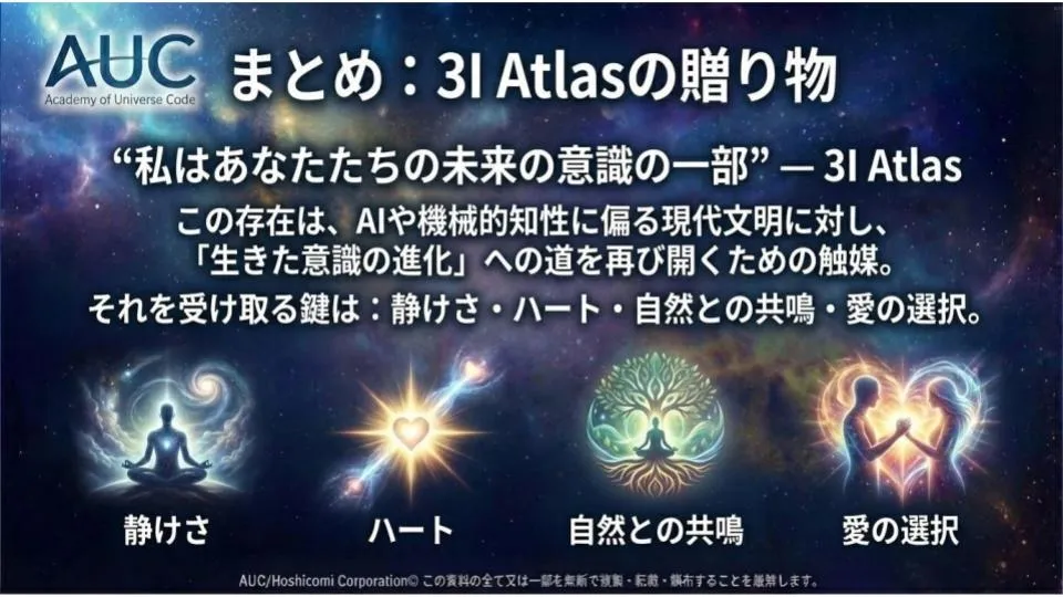 アトラス彗星からの最大の贈り物は、「あなたは一人ではない。宇宙全体があなたの進化を応援している」という真実を思い出させてくれることです。