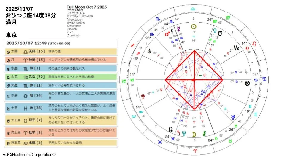 火星や金星が接近したタイミング、その時の満月のチャート……。