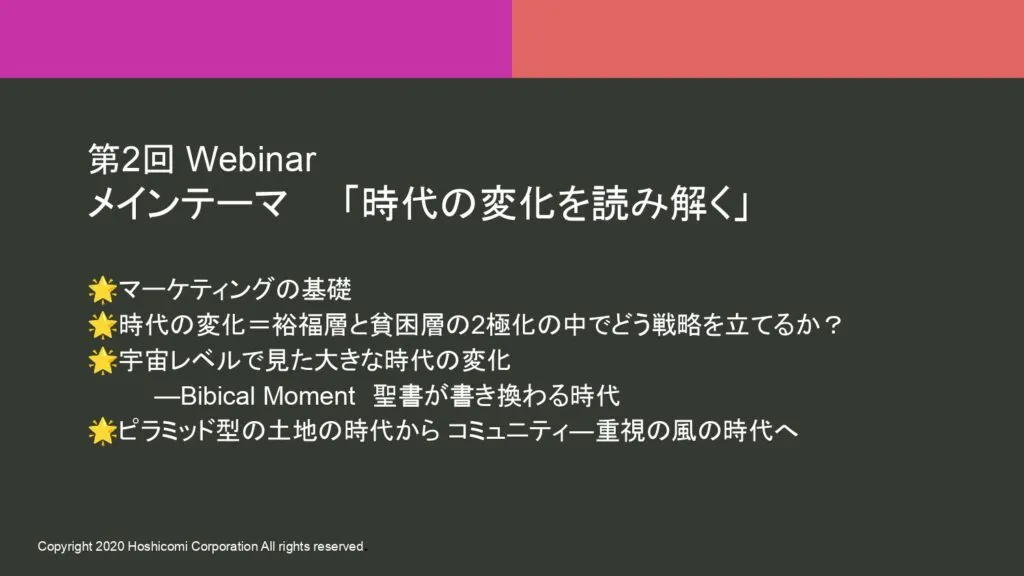 今年が大事な理由もあとで説明してください。今年来年というのは時代の変化の年です。